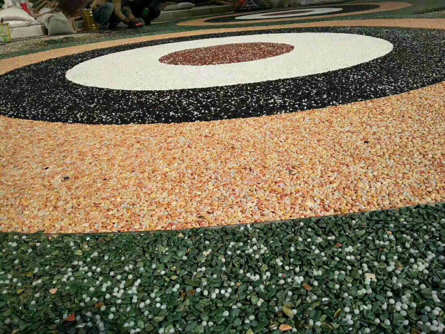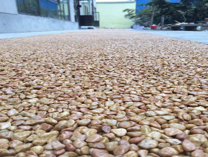 透水環(huán)保。彩石粘接后呈自然堆積態(tài)度,孔穴均勻分布,是所有透水制品中透水率高的一種